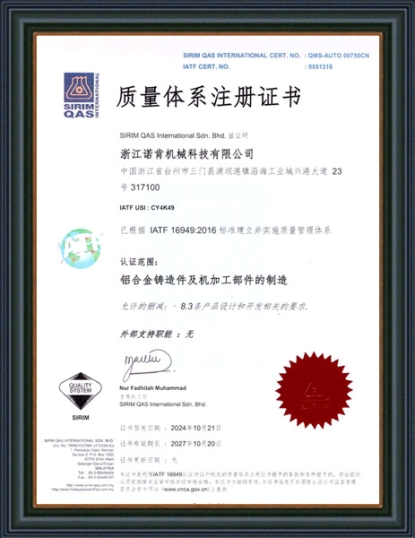 浙江諾肯機械科技有限公司(原黃巖新興機械配件有限公司)成立于1983年,坐落于浙江省東海之濱臺州市三門縣沿海工業城,現有員工160余人,總體占地面積40000平米。公司秉承“誠信為本、精工細作”的精神,現已發展成為集研發、制造及營銷為一體的鋁合金精密鑄件生產基地,為客戶提供精密鑄造、熱處理和精密機加工的一體化解決方案。